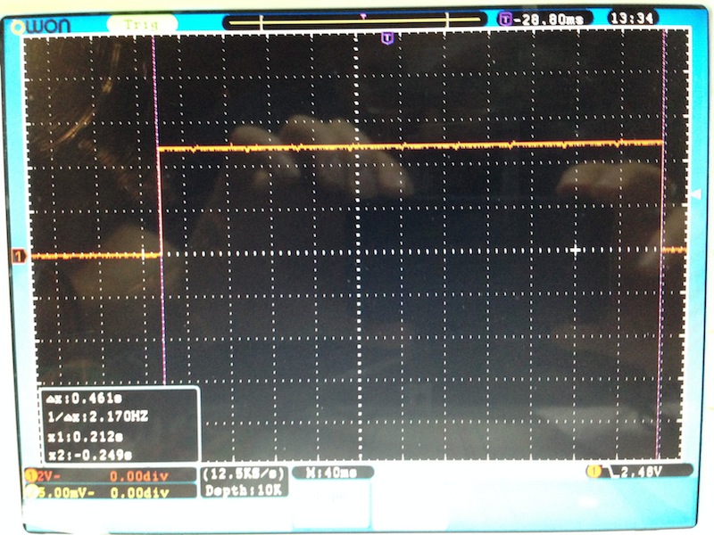 I set up my oscilloscope and my free-run board and made sure that the free-run was still working.