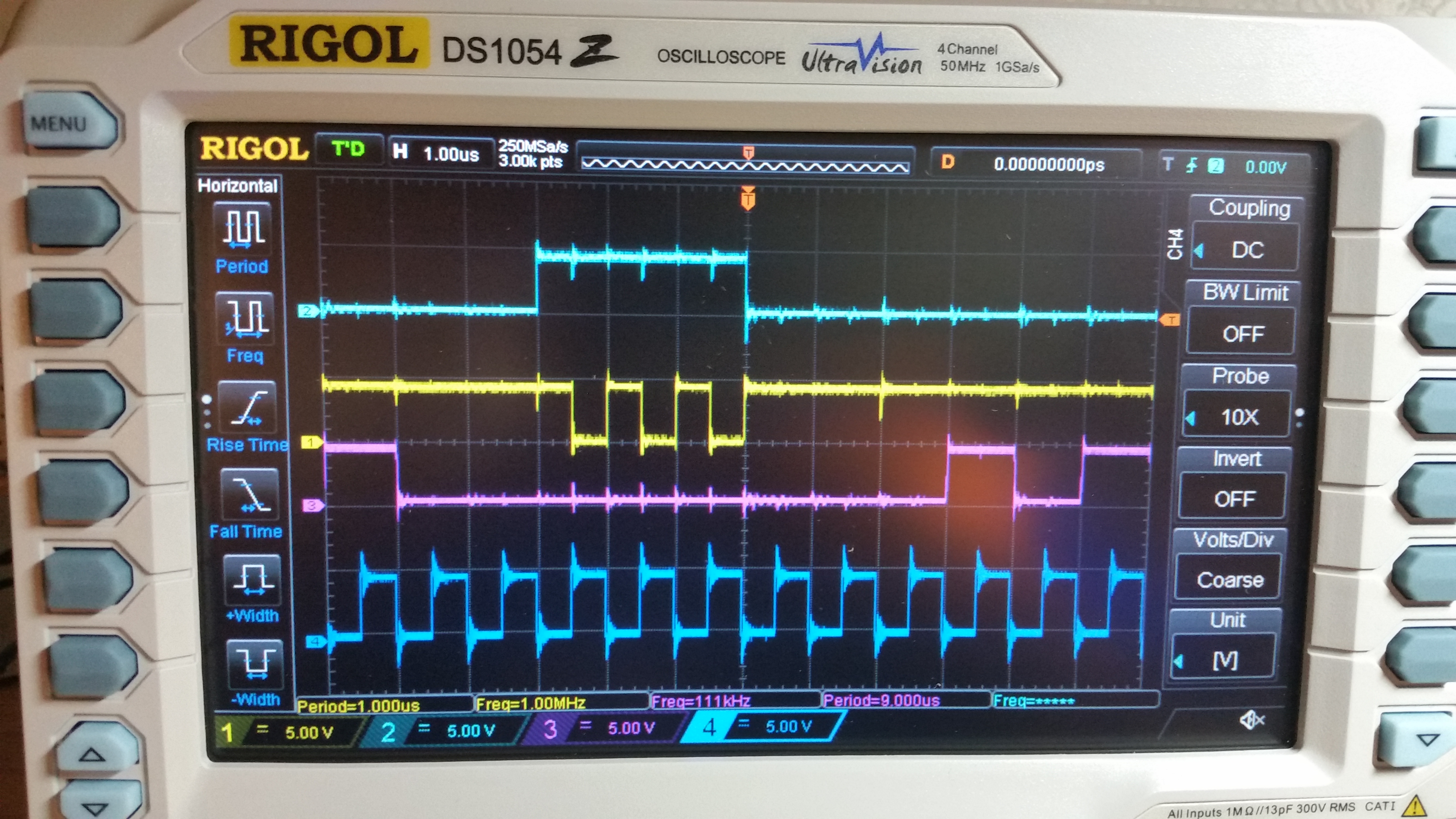 I have the '816 sort of running on the breadboard. The traces above from bottom to top are: