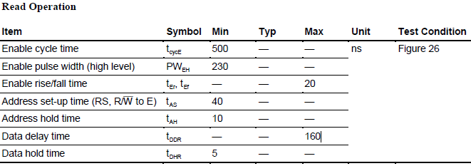 To address this I was going to use a timer, but as Garth has pointed out elsewhere I should be using the LCD's busy flag.