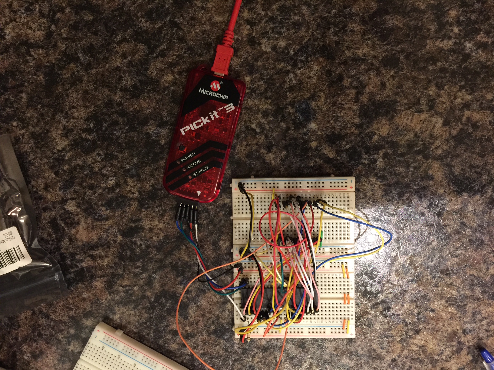 In the middle is the address bus and data bus (I know im gonna get hate for doing this on a breadboard, but hey - it's what i had