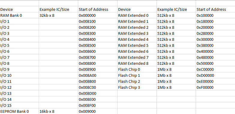 And yes I realized I wasted a whole bunch of address space in the I/O region, but I figured a single 32kb RAM chip, and a 16kb EEPROM makes it easy to do chip selects, so just went with it to simplify my addressing scheme.