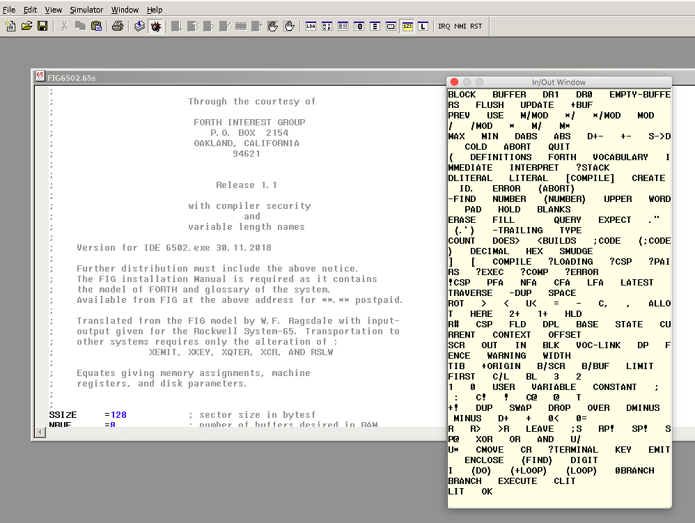 Re: FigForth in 6502 IDE