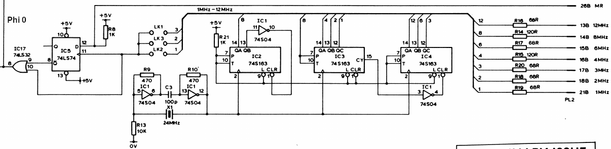 I'm minded to use a 65C02 for this build. The 6502A topped out at 3MHz rated speed, but subsequent versions of the 65C02 go much higher. So I got thinking: why not connect the CPU to a different subdivision of the 24MHz clock and go faster?