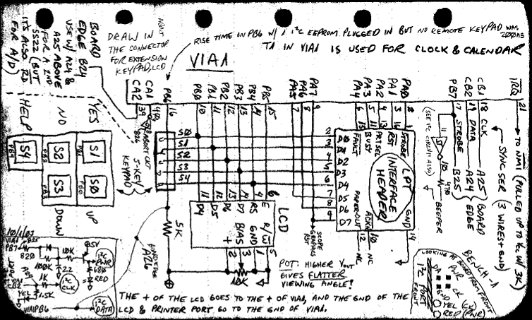 LOL, you would have to show my worst one! :lol: That one is in my tiny 3x5 QRG (quick-reference guide) ring binder for my workbench computer. After scanning it, I spent a lot of time trying to clean it up in the photo-editor software to make it readable at all (after the paper was quite yellowed and the pencil lines weren't as dark as they should be), so I wouldn't have to re-draw it, since there was so much to pack into a 3x5, showing all the I/O I have connected to VIA #1, a 65c22. There are lots of hand-drawn circuits in the 6502 primer though, especially in the circuit potpourri page, and in the page of QRG scans of the workbench computer tiny ring binder at http://wilsonminesco.com/BenchCPU/B1QRG/ (which I did before I knew how to operate the photo-editing software as well as I do now—shucks, one more thing I should go through and improve...)