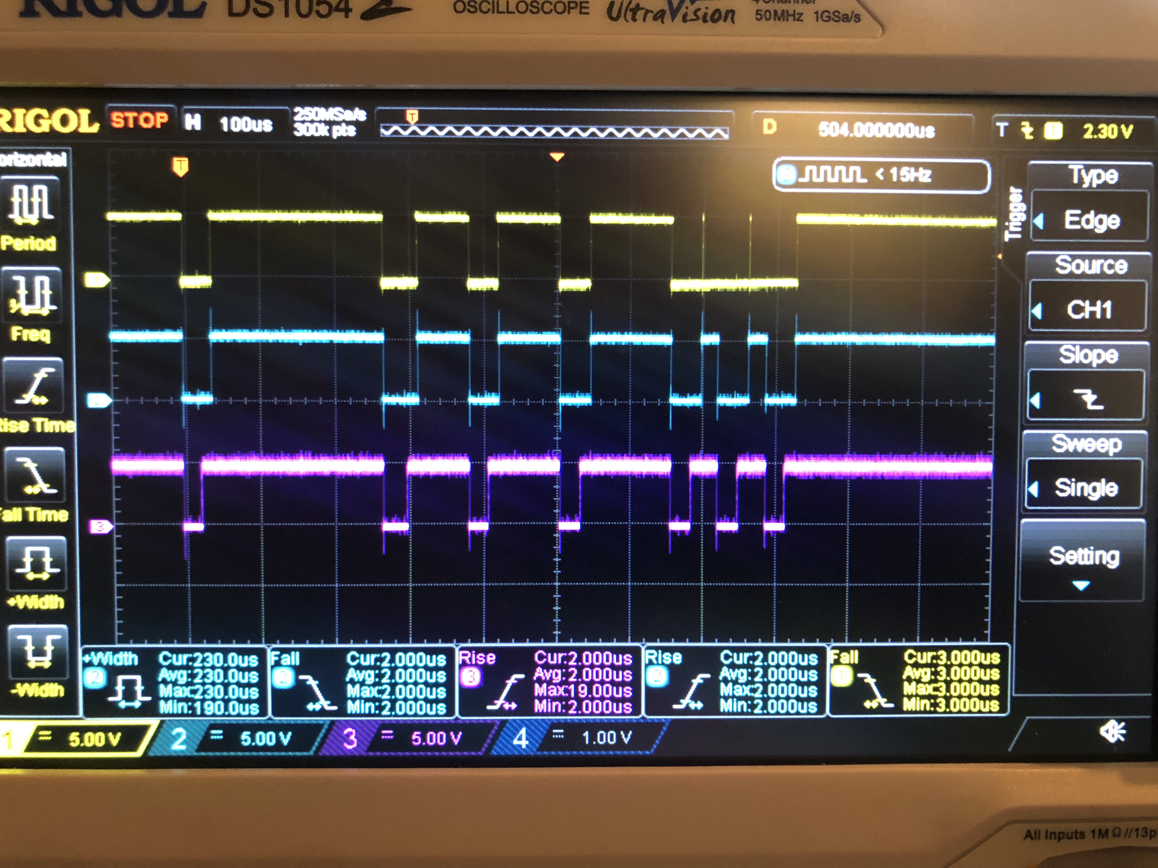 I did investigate the “pulse is too narrow” hypothesis by putting a monostable in between my downstream device and CA1 which is set up to cause an IRQ on falling edge. That fixed it (see the screenshot)