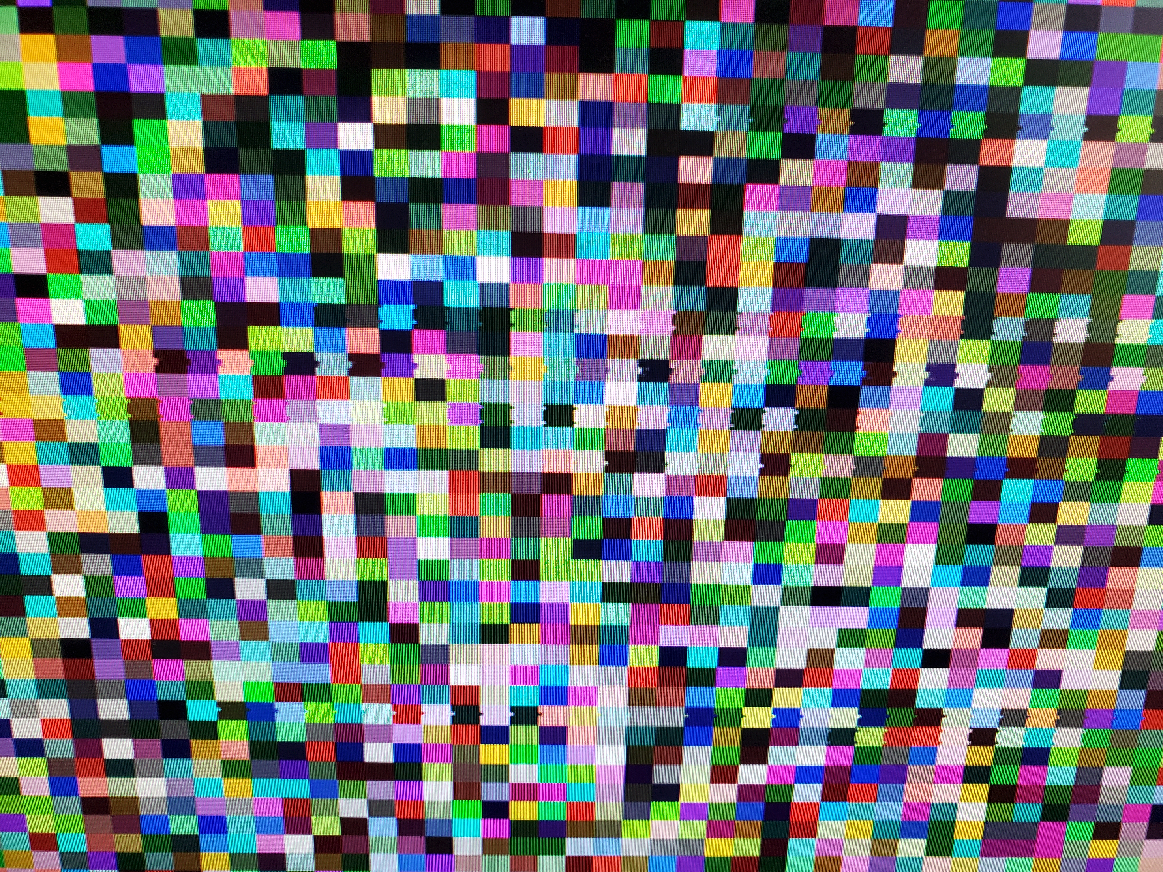 Problem is that I'm getting some flickering, if you look at the picture where boxes are not perfectly square those lines are shaking. I would think it was just a timing issue with sram, but my sram is 10ns and I've gotten the same results running both a 25.175 640*x480 as well as an 800*600 @ 40mhz and the monitor looses sync randomly. I've also attached my Verilog to see if anyone can help.