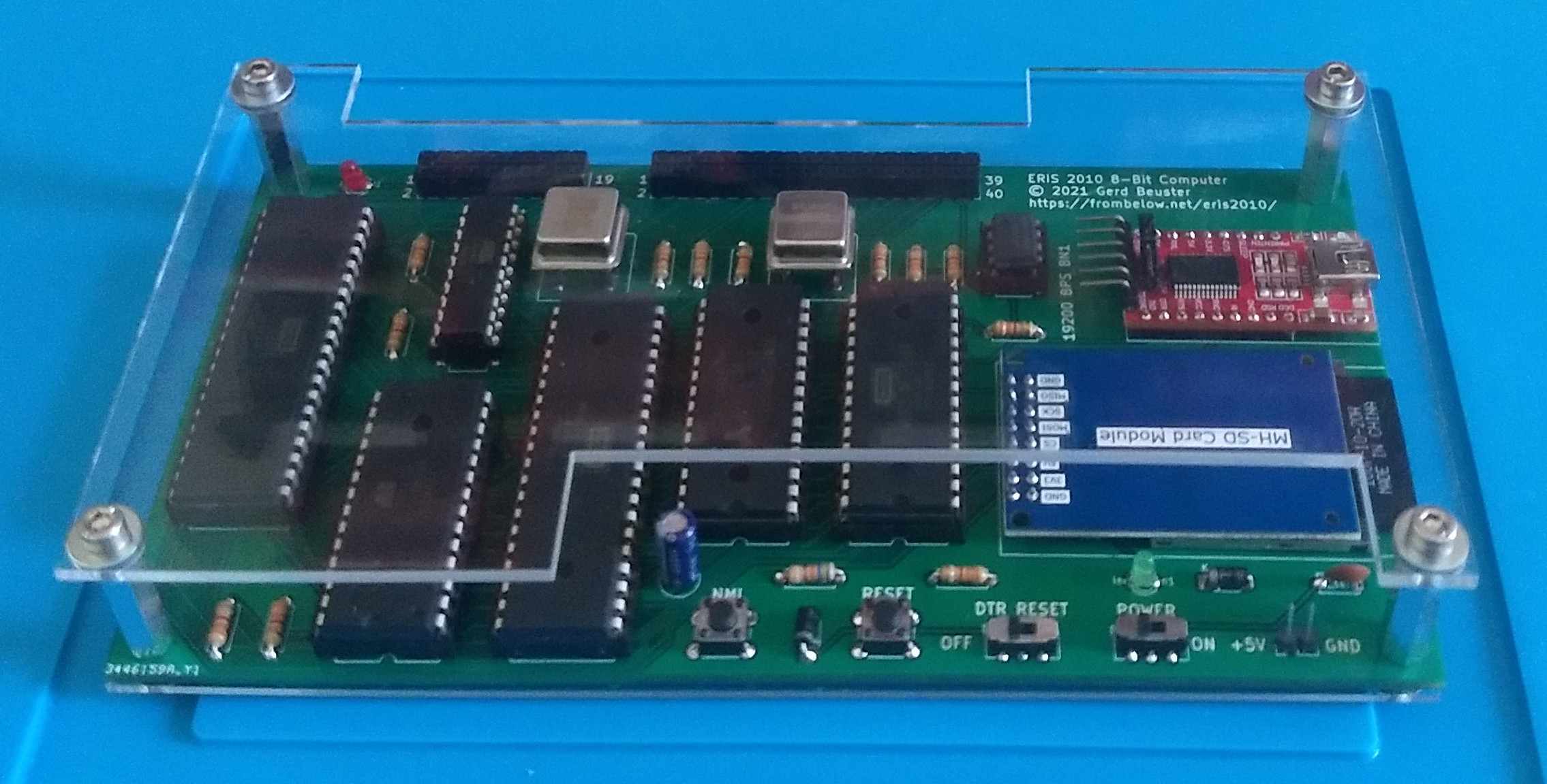 Spending way too much time at home during the Covid 19 pandemic, I built a little SBC based on the 65C02 CPU running at 4 MHz with 8 KB ROM and 32 KB RAM. Once I got the system running on a breadboard, I created a PCB and a case for it. (Well, the case is just two layer of acrylic sheets and four spacers.)