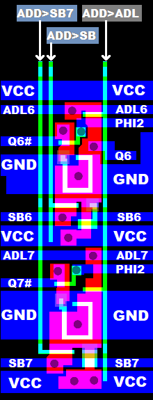 However, while the FETs switching Q0..7 to ADL0..7 all have a common output enable 'ADD>ADL',