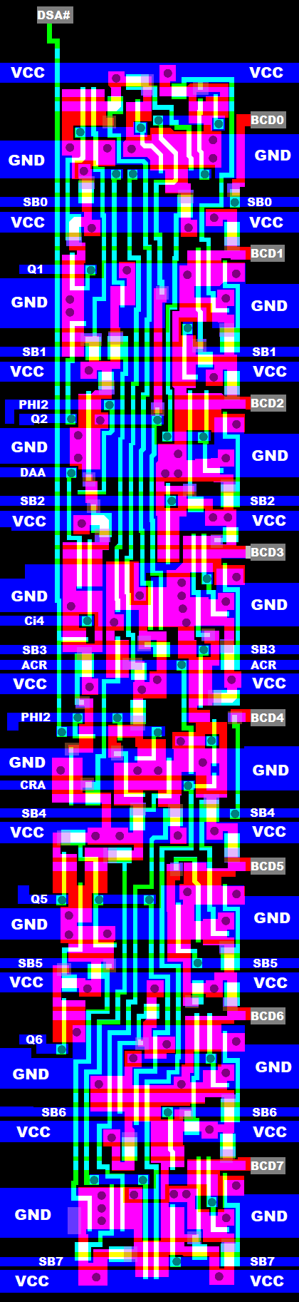 BCD detection is located East from the ALU carry chain in the silicon.