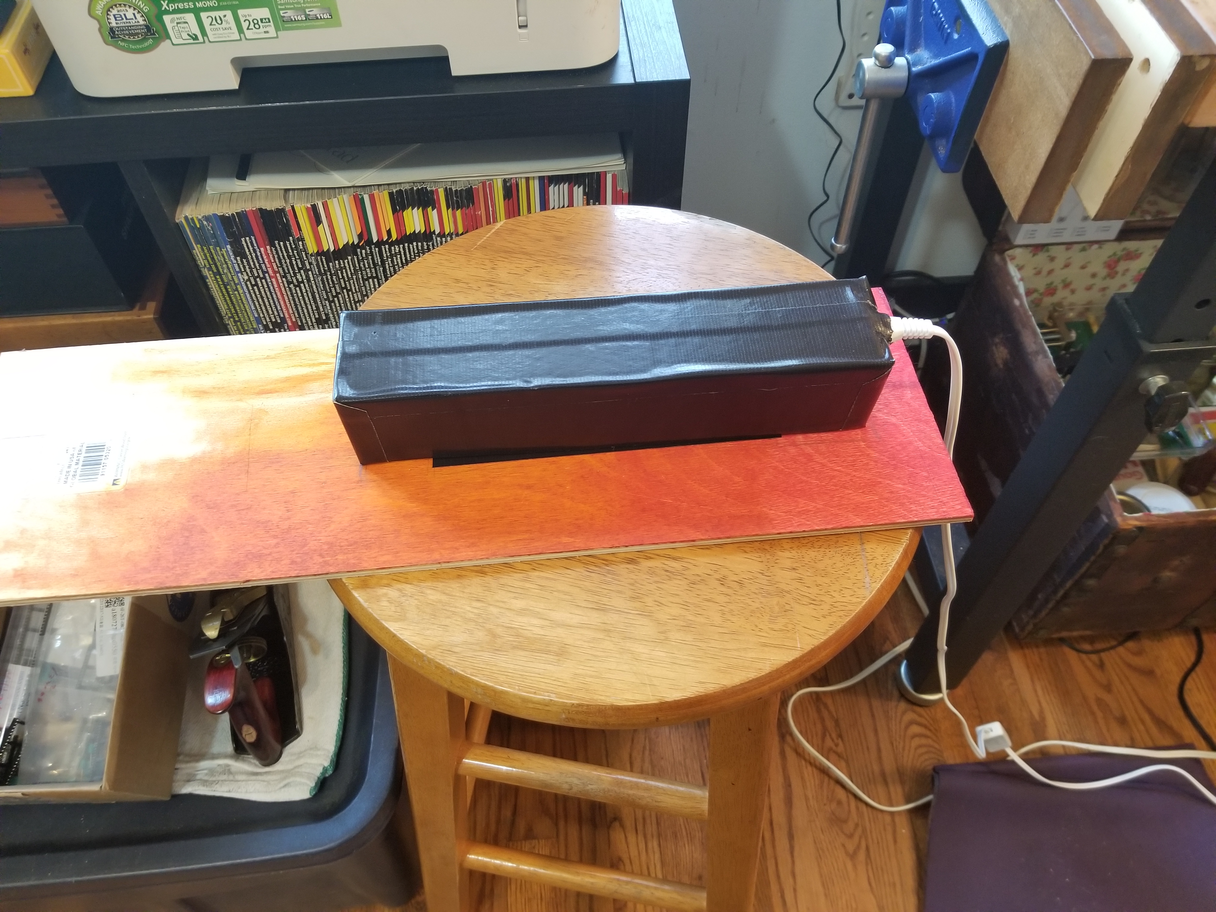 Anyway, here are some photos of the project, my little workspace, and a couple shots of my home-made EPROM de-programmer, just for fun: