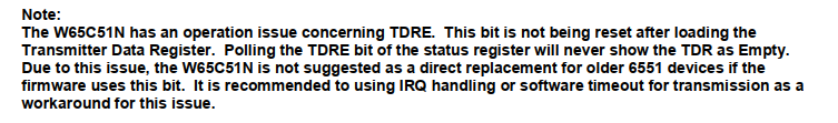 Does anybody know if the UART's on the WDC microcontrollers (W65C134, W65C265) suffer from the same bug as the W65C51?