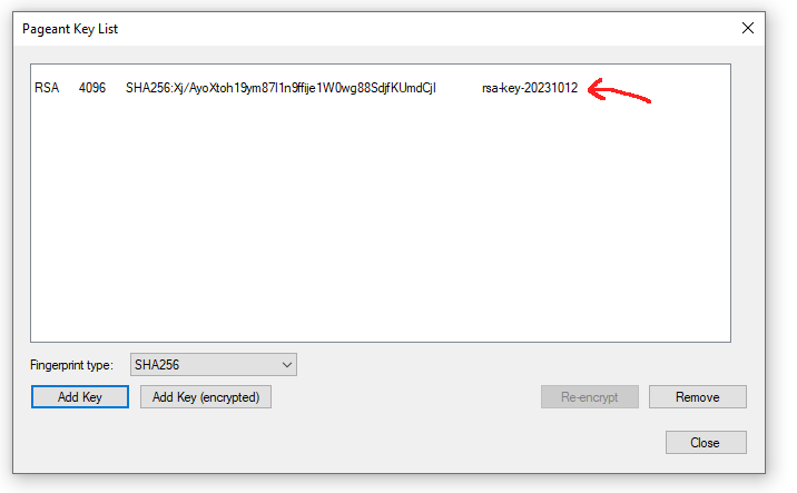 If everything has gone correctly you should see your new PPK in Pageant: