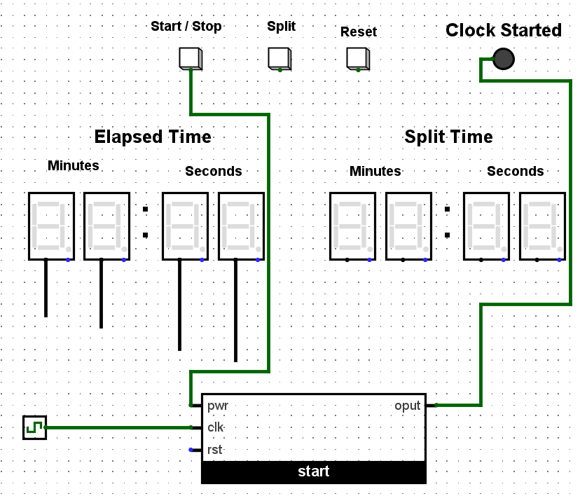 When I click the push button 'Star / Stop", the LED "Clock Started" should light up.