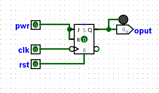 In the case of the JK circuit above this would happen with the clock pulse filtering out the noise; and as such the clock in a real circuit would likely be running much faster than you can perceive, however, in Logisim everything is slowed way down so you can see the circuit actually running.