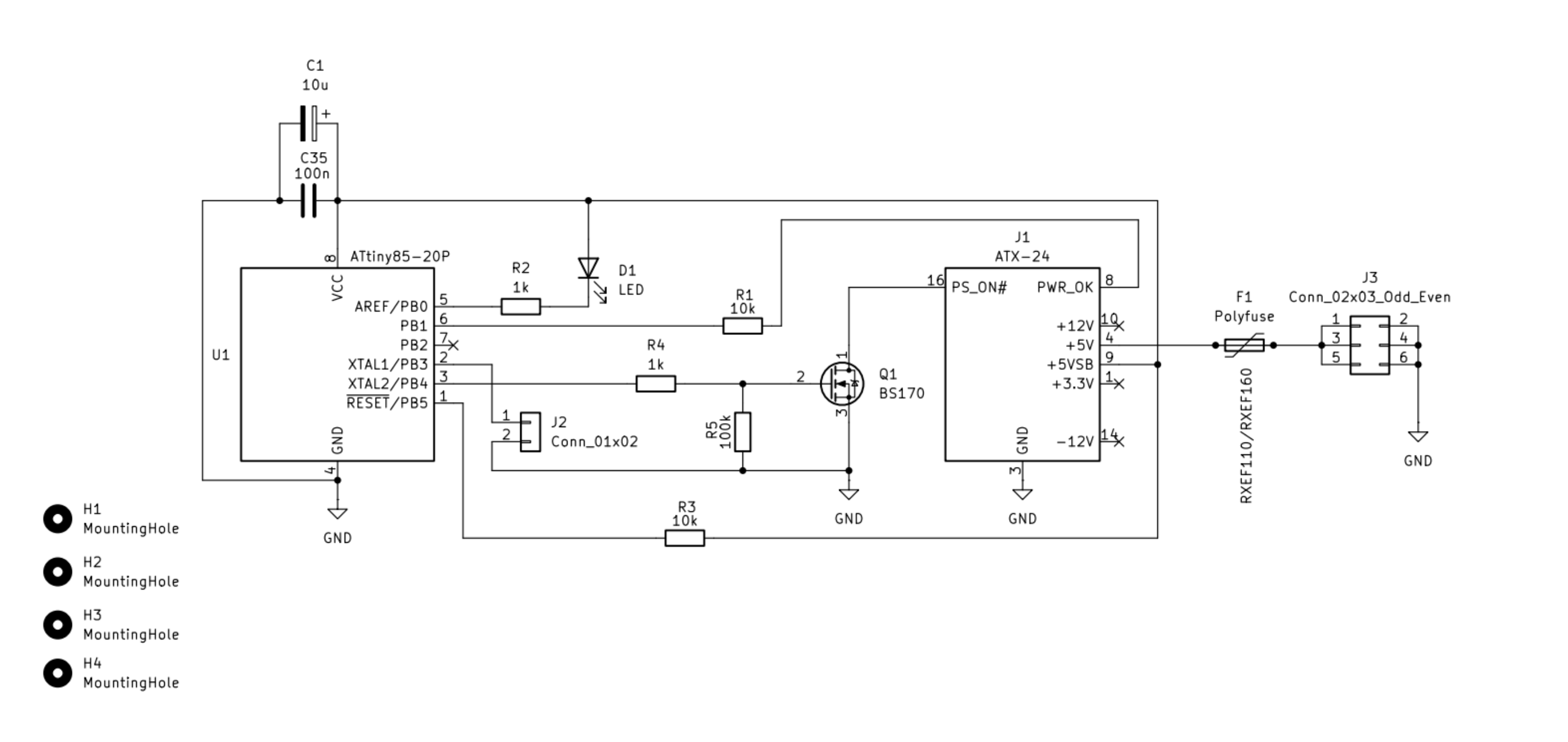 I am in the making of a rev 2 of my 65C02 SBC with onboard graphics and all kinds of peripherals. It's a lot to get working so I am trying to verify all new parts separately. One of the improvements I'd like to make is to have the board on a mini-ITX form factor and mount it in a case. For the ultimate experience I would like to use a standard (modern) ATX PSU, with the power button on the front of the case to turn on/off the computer.