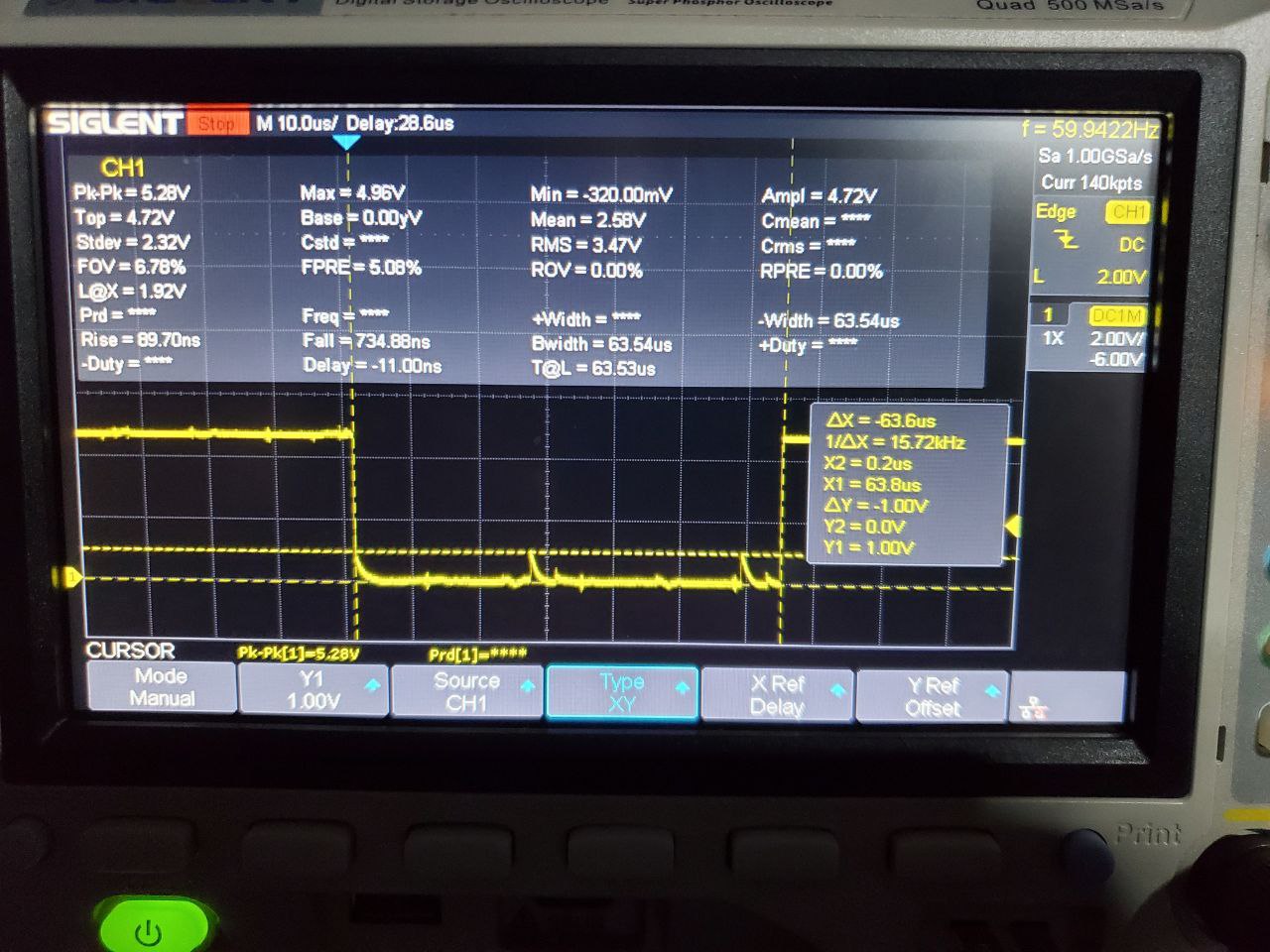 Horizontal is showing right around 3.9 usec (VGA Timing says it should be 3.81 usec)