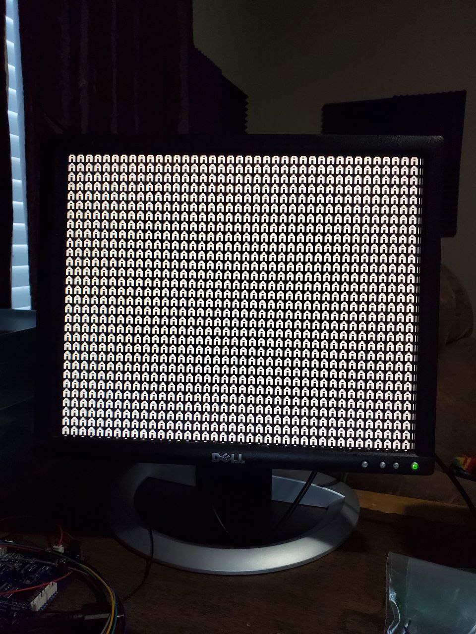 As you can see the characters are slightly offset, and I'm again having some syncing issues now that I've changed out the D-flip flop for a parallel to serial register; and once again I'm having some syncing issues. I'm sure a lot of this is due to timing issues that I need to figure out, but other than dropping out periodically the image is very stable, much more so than I had expected.