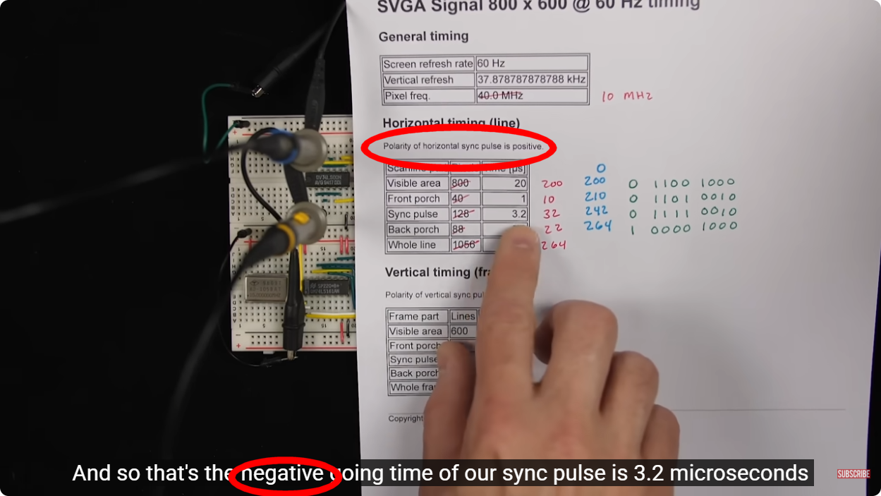 I have seen people swear by Ben Eater a being the perfect source in his video, but even he made a few errors in his “Worlds worst GPU” video. The big one being the incorrect polarity of the sync pulses, even though he has the sheet right in front of him when he makes the error.